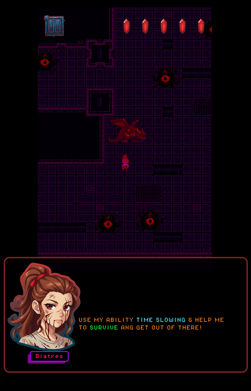 Move carefully, avoid enemies, and use your Slow Mode ability wisely to dodge incoming threats and survive longer.